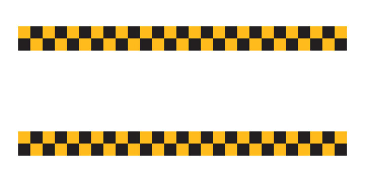 Horizontal top and bottom borders with checkered black and yellow print and space for text. Police or taxi car background. Repeated squares pattern. Vector flat illustration