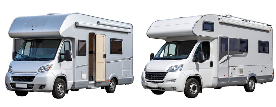 Modern white camper van isolated on transparent background promoting travel and freedom