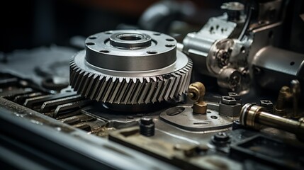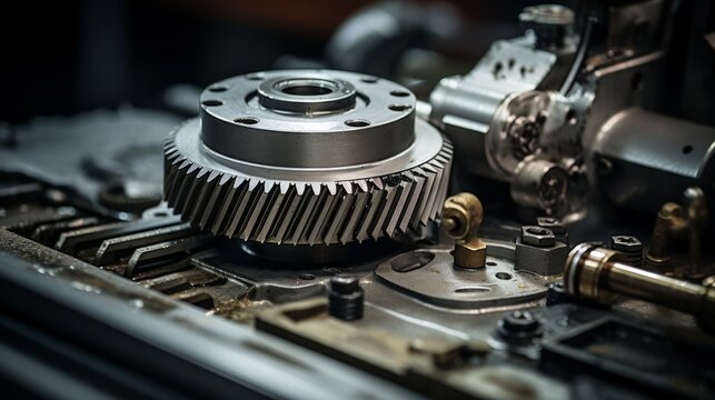 A machine with a silver gear and a silver cylinder. Neural network ai generated art