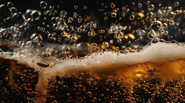 A close-up view of fizzing bubbles rising in a carbonated beverage, capturing the effervescence of the moment.