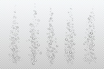 Realistic fizzing bubbles. Underwater carbonate sparkles under water fizz gas isolated aquarium air. Vector bubble stream