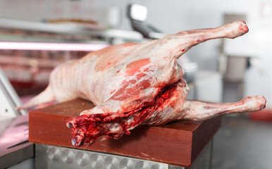 Lamb carcase in butcher shop
