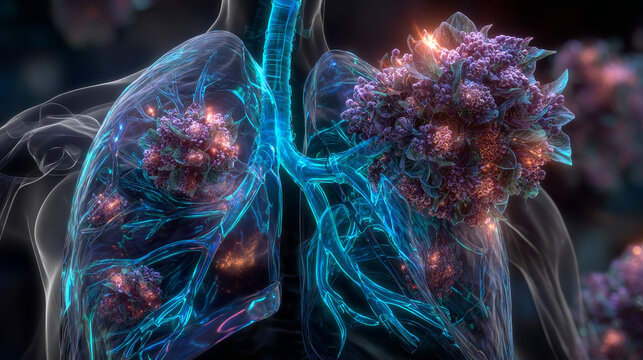 Smoke is surrounding human lungs, representing the dangers of smoking, nicotine addiction, and tobacco use, leading to lung cancer and respiratory diseases