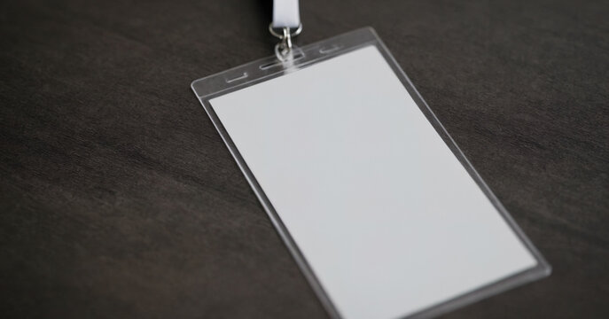 A blank ID card holder mockup against a white background, ideal for showcasing employee badges and corporate identification designs.