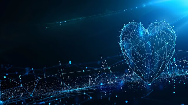 Futuristic medical network of heart anatomy and cardiological structure, innovative medicine and technology, low poly wireframe