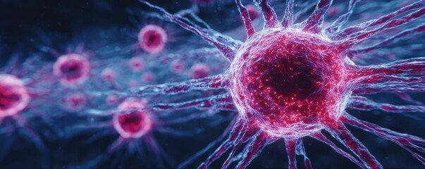 Hyperlipidemia 3D render blocked artery concept. Close-up view of vibrant microscopic cells in a dark environment.