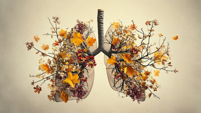 Illustration of human respiratory system with highlighted bronchial tree, showcasing lungs and trachea.