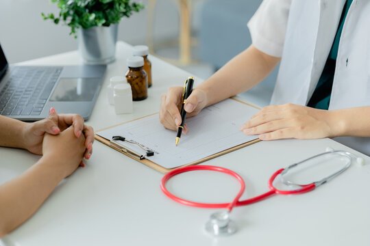 Professional gynecologist consulting pregnant woman with care