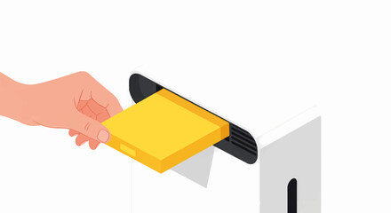 A hand inserting a new yellow filter module into an appliance. Product maintenance and component replacement concept. Flat design vector illustration