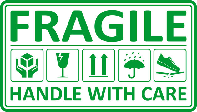 Fragile Handle With Care Warning Label. Packaging Sticker and Shipping Safety Instruction Icon. Vector Illustration.