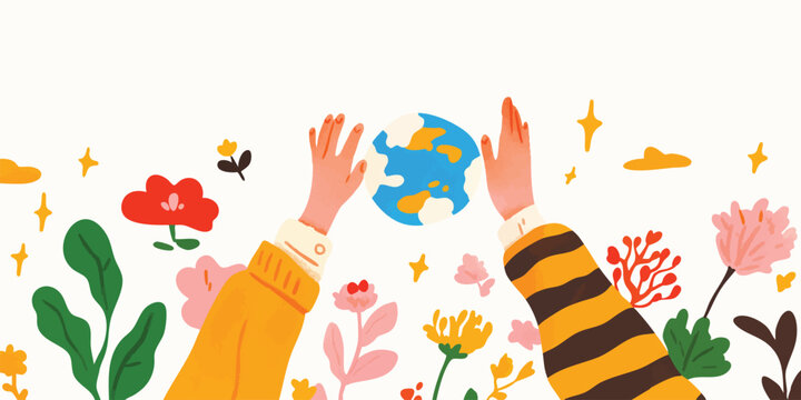Depicting the tender embrace of planet earth, this art conveys the message of environmental care and unity, with human hands gently cradling a stylized globe amidst blossoms and stars.