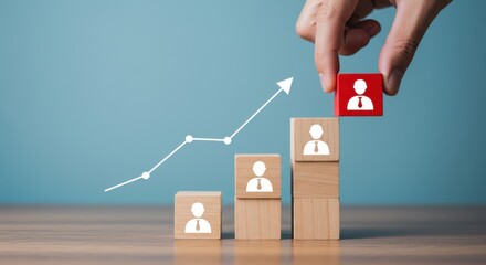 Business Growth and Human Resources Concept with Growing Graph and Wooden Cubes