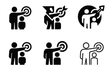 Mentorship Icons Grid. A mentor guiding a student in career choices and personal development. Set Logo of A mentor guiding a student in career choices and