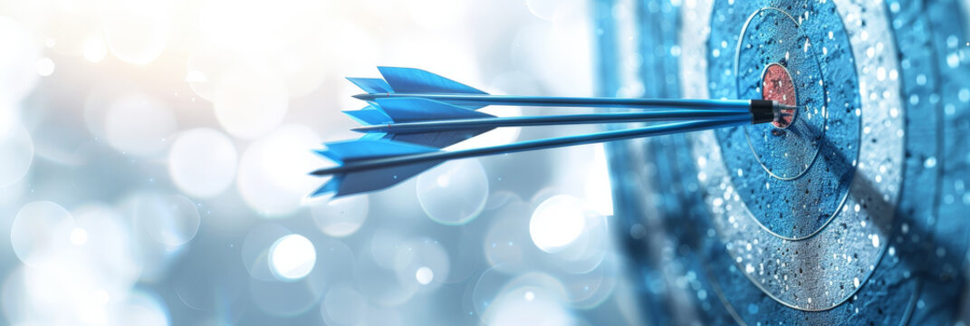 A blue and white target with three arrows in the center, symbolizing success in digital marketing  concept