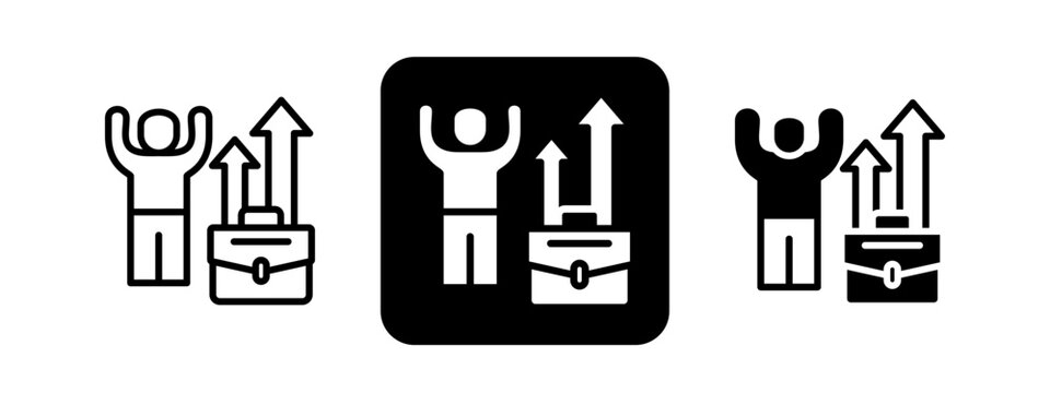 Simple line drawing depicting a group of people icons connected by an ascending arrow symbolizing career development, business growth, or team success for corporate presentations and