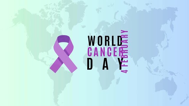 World Cancer Day Awareness Campaign with Purple Ribbon on World Map Background