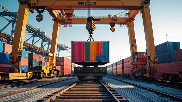Shipping Container Loading at Port Railway Terminal