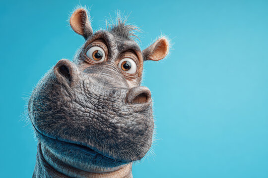 Funny caricature portrait casual, strong man with fashion hair style on blue background