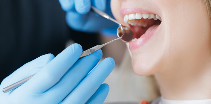 Dentist examining patient's teeth in clinic, closeup
