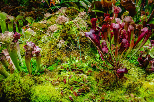 Beautiful carnivorous red and green pitcher plants