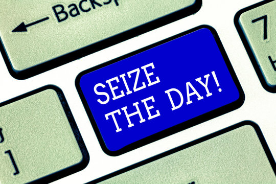 Handwriting text Seize The Day. Concept meaning Embrace opportunities Have motivation inspiration optimism Keyboard key Intention to create computer message pressing keypad idea
