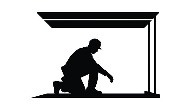 Simple logo design for construction company featuring house and work tools in monochrome style
