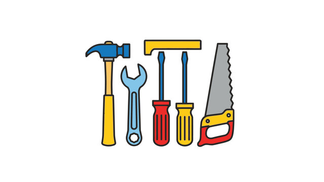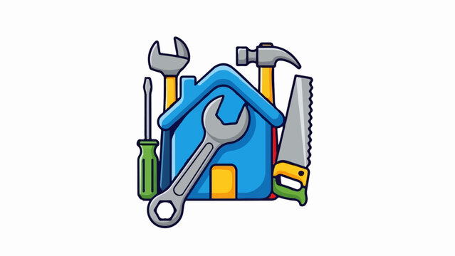 A blue house icon with various repair tools like a screwdriver, wrench, hammer, and saw