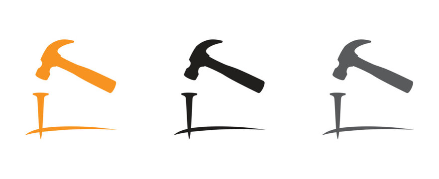 Dynamic hammer and nail logos perfect for construction, home improvement, and repair services. These versatile designs symbolize building, fixing, and creating. Ideal for branding, websites, and marke