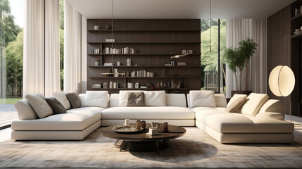 Ultra-modern living room with a sofa design, coffee table, and rug, AI Generated