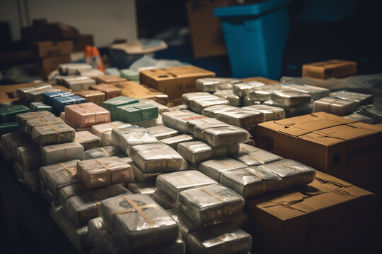 Drug trafficking. Police stopped drug trafficking cartel. Capture of criminals transporting large consignment of drugs. Police seized shipment of drugs. Drug courier with cocaine and heroin narcotic