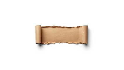 Fragment of damaged cardboard on a plain white surface serving as a layout backdrop, background for text or graphics