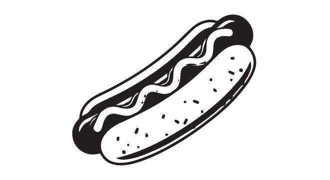 Stylized hot dog sandwich illustration with bun, sausage, and toppings for food category.