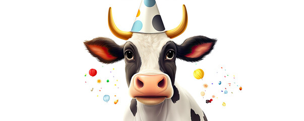 illustration, line cartoon cow. Hand drawn, Isolated. With "Fresh milk" lettering. Applicable for package, poster, label designs, banners, flyers etc. Illustration with cow head in flat design style