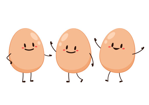 Vector set of cartoon images of Brown Egg. Vector Illustration.
