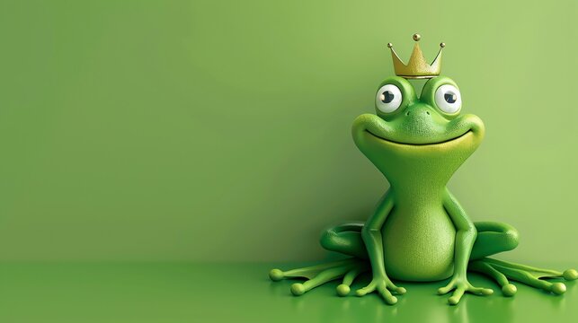A cartoon frog wearing a gold crown sitting on a green background.