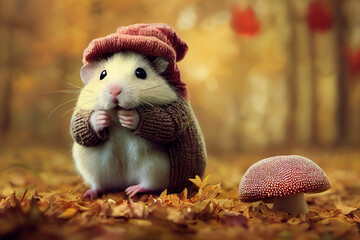 Cute hamster in autumn. Hamster cartoon character, funny animal.