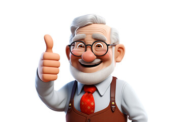 Set of 3D cartoon character cute elderly old man dancing happy celebrating have fun, Full body isolated on white and transparent background