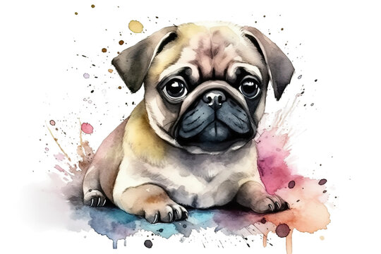 Illustration baby pug cute watercolor