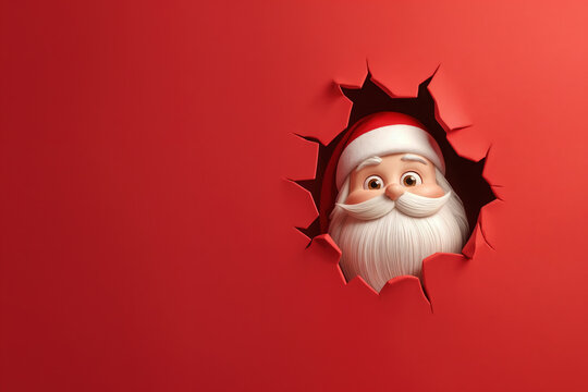 3d santa claus peeking through red wall