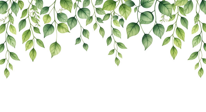 Delicate watercolor painting of cascading green leaves against a clean white background