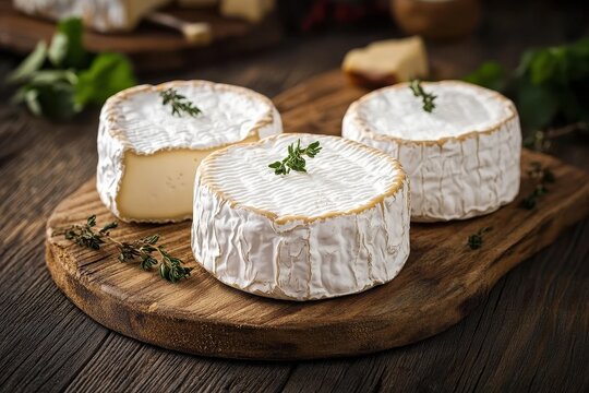 Cheese wheel with several cut slices and visible cheese holes displayed on wooden cheese board. Local farms and agriculture concept. Supermarket sales, food ingredients