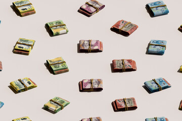 3D Render of Australian Dollar Banknotes in Pattern