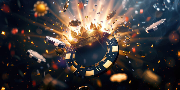 Explosive burst of casino chips and game elements in a dynamic, high-energy scene.