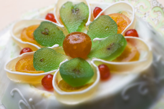 Traditional Sicilian cassata cake with ricotta and candied fruits