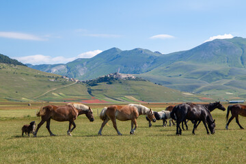 horse national park sibillini mountains castelluccio italy