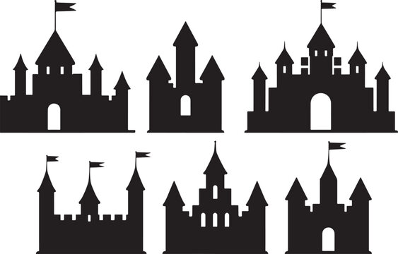 set of castle silhouettes on isolated background