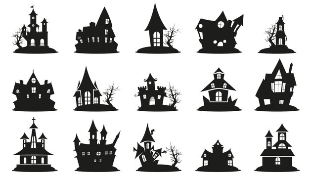 beautiful fairy tale queen or princess and medieval castle silhouette black and white vector design set