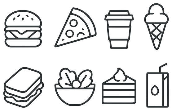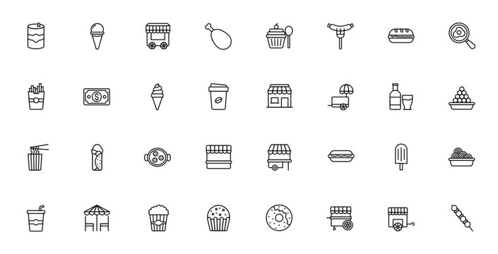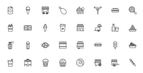 Cafe line icon set with editable coffee, tea, espresso, cappuccino, cake, donut, cupcake, drink, mug, and bakery symbols for restaurant, eatery, business, menu, staff, meeting, study, breakfast