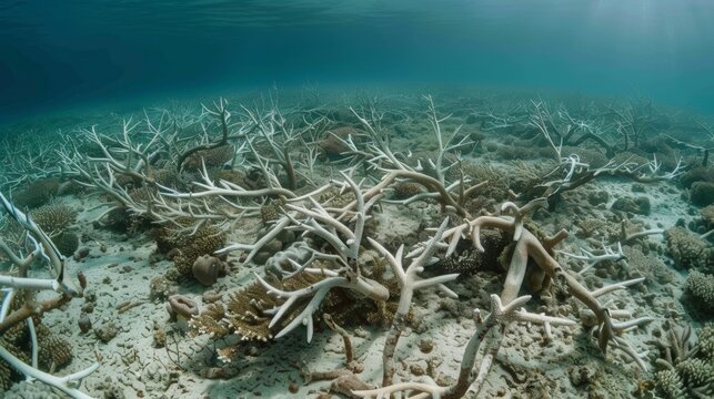 The once thriving coral reef now lies barren a casualty of the red tides toxic conditions.