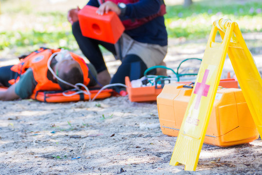 A team of emergency medical technicians providing care at a mass casualty incident Generative AI